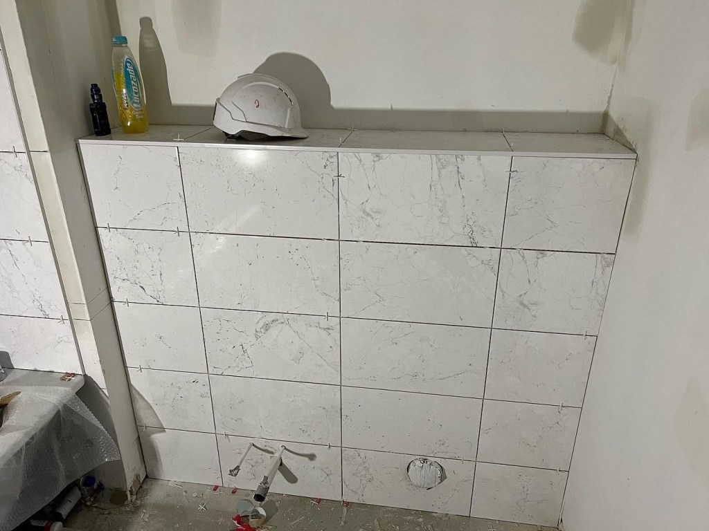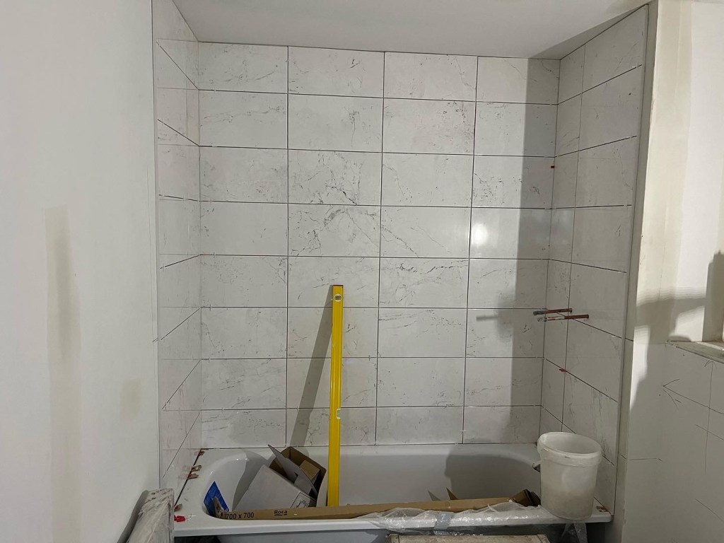 Nice standard bath complete today also with a toilet wall following through ✅ all ready to grout tomorow .
